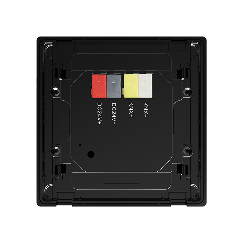 La pantalla táctil de pantalla completa proporciona comentarios claros e intuitivos. Muestra el Estado de encendido / apagado, cuando el termostato está apagado, la pantalla se mantiene apagada y el indicador del botón de encendido se mantiene encendido. La pantalla también muestra la temperatura interior actual, la temperatura establecida, el modo seleccionado (aire acondicionado, calefacción por suelo o aire fresco) y la configuración de la velocidad del ventilador (alto, medio y bajo). En estado cerrado, el usuario puede acceder a la configuración de calibración de temperatura a través de una combinación de botones, restaurar los parámetros predeterminados de fábrica y establecer la dirección de comunicación.